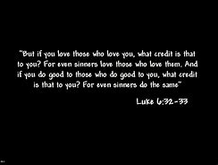 Luke (and Matthew) shared a statement from Jesus, and if you ask me, it can be extremely hard to embrace. And I believe as Christians we can breeze right through some scriptures without seriously believing that it pertains to us, such as: “But if you love those who love you, what credit is that to you? For even sinners love those who love them. And if you do good to those who are good to you, what credit is that to you? For even sinners lend to sinners to receive as much back.” (Luke 6:32-33 & Matthew 5:46-47)